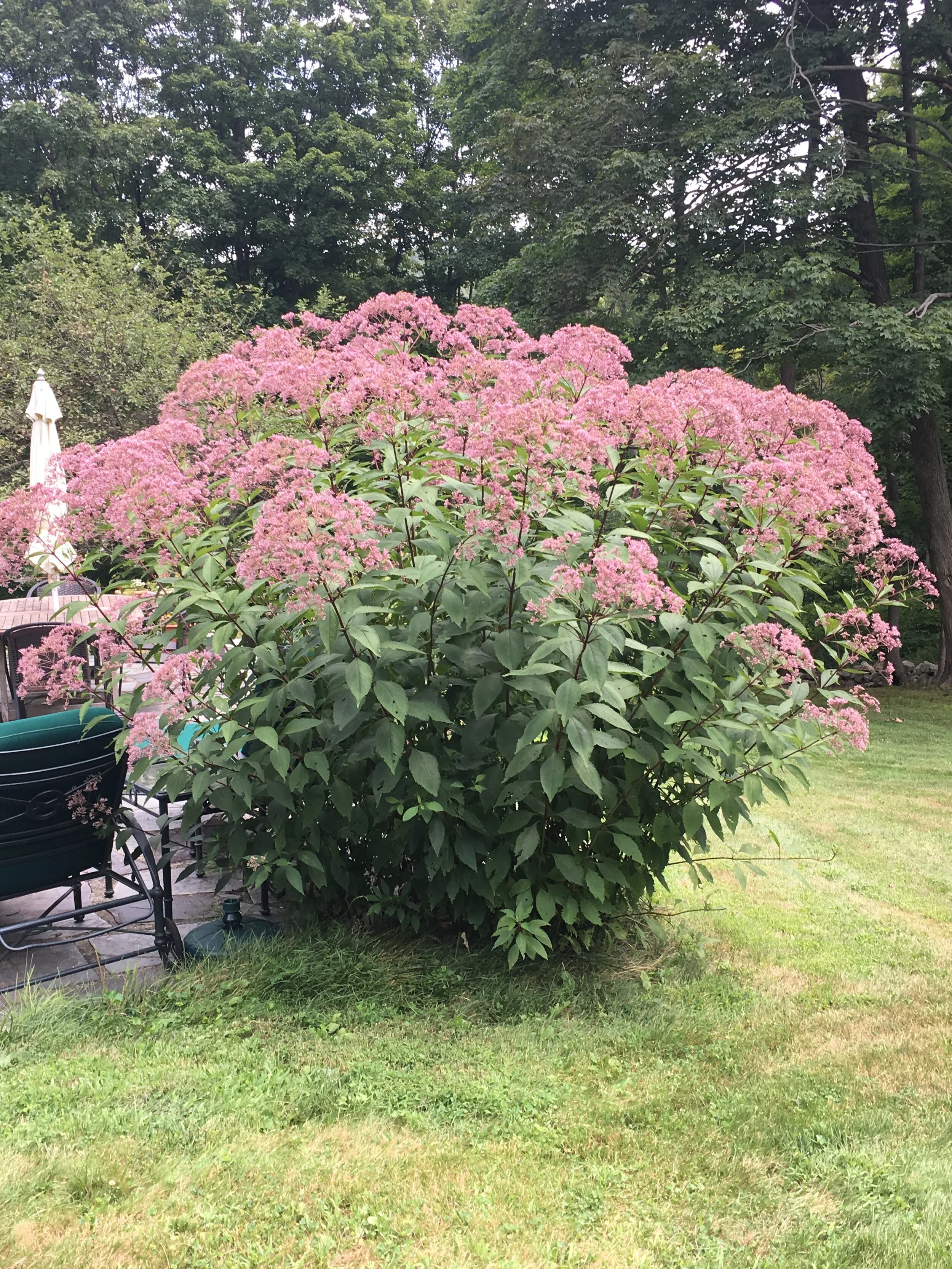 Eutrochium purpereum aka Joe-pye weed, is one of my favorite plants. The large flower heads are covered in many types of butterflies, moths, and bees in July and August.